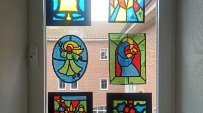🌟 En 6.º le ponemos color a los días grises. Mirad qué vidrieras tan bonitas hemos hecho para decorar el pasillo. ¡Parecen de verdad!