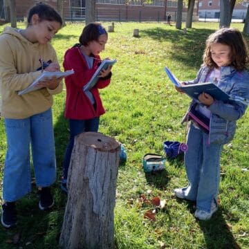 🌿 Exploradores en la chopera, aprendiendo a observar y documentar la flora y fauna para su primer diario de campo. ¡Una mañana en la naturaleza! 📝🍃