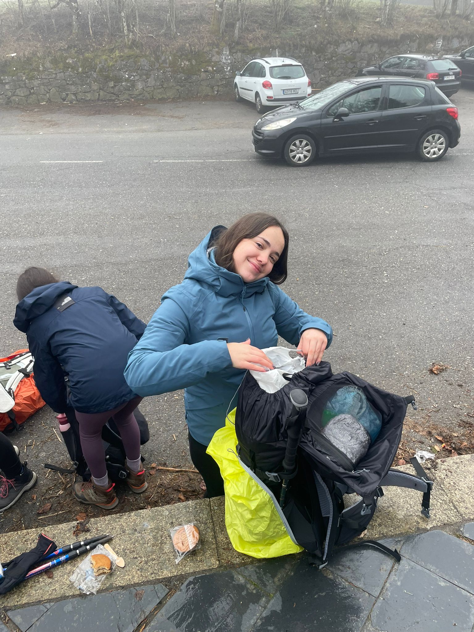 La merienda compartida al llegar, reponiendo fuerzas entre risas.