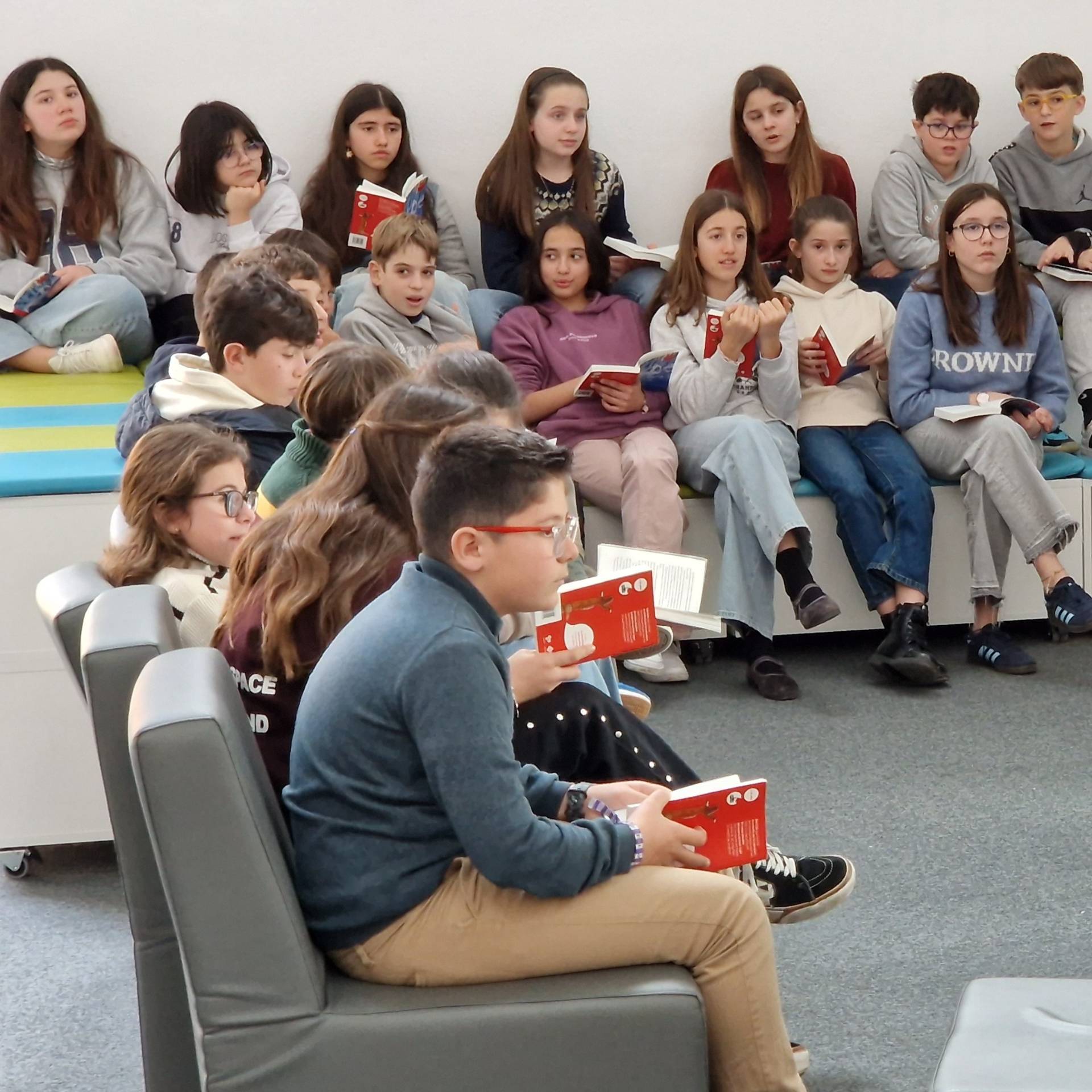 Dentro del proyecto de biblioteca, una de las actividades que más nos gusta es elegir un libro y leerlo en común, parándonos a comentar lo que va pasando. No es solo leer: es escuchar, opinar, discrepar, volver atrás para comprobar una pista y preguntarnos qué haríamos nosotros en su lugar. Y se nota que es de sus momentos favoritos.