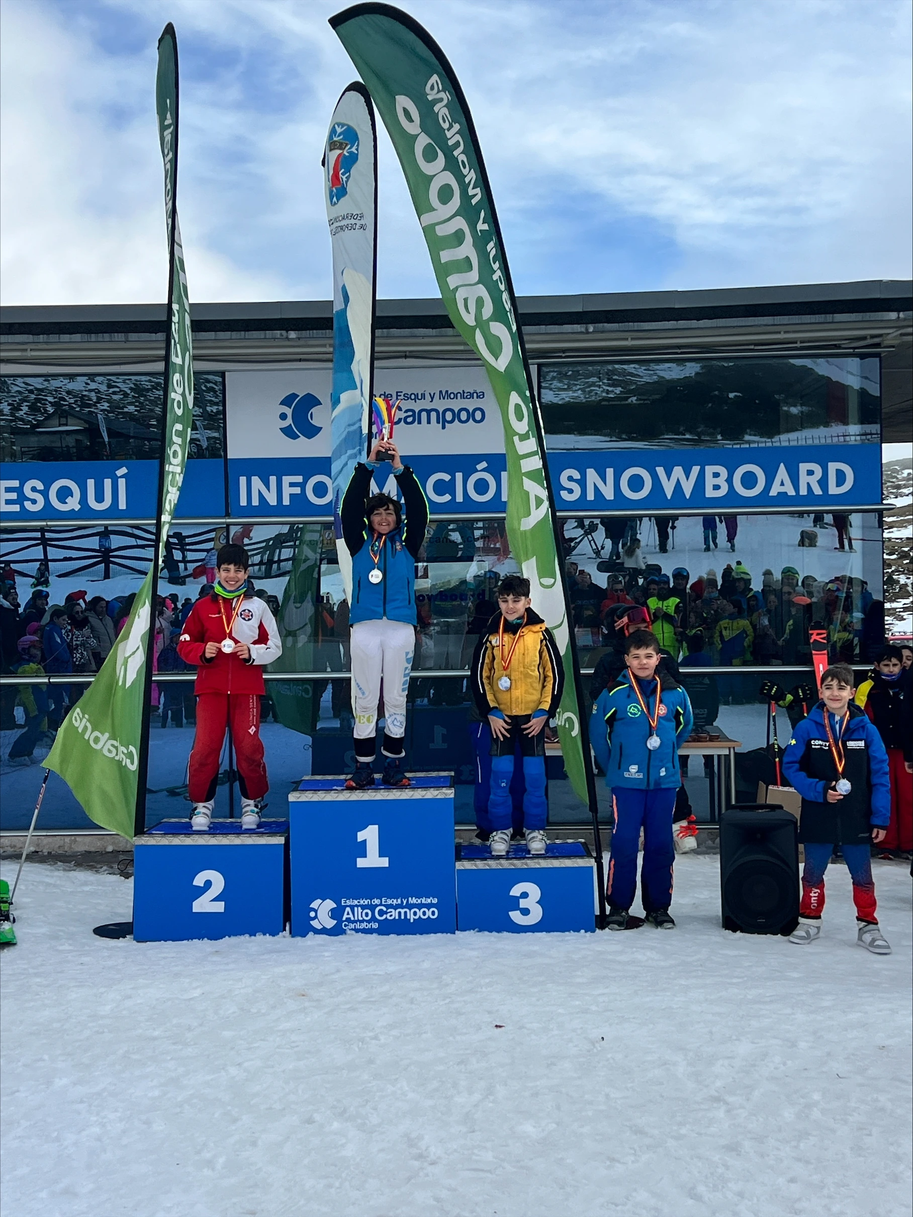 En categoría U12, Jaime cerró una muy buena actuación con 2.º puesto en Gigante y 5.º en Slalom. Por su parte, en U8, Lucía completó un fin de semana redondo con 2.º puesto tanto en Gigante como en Slalom.
