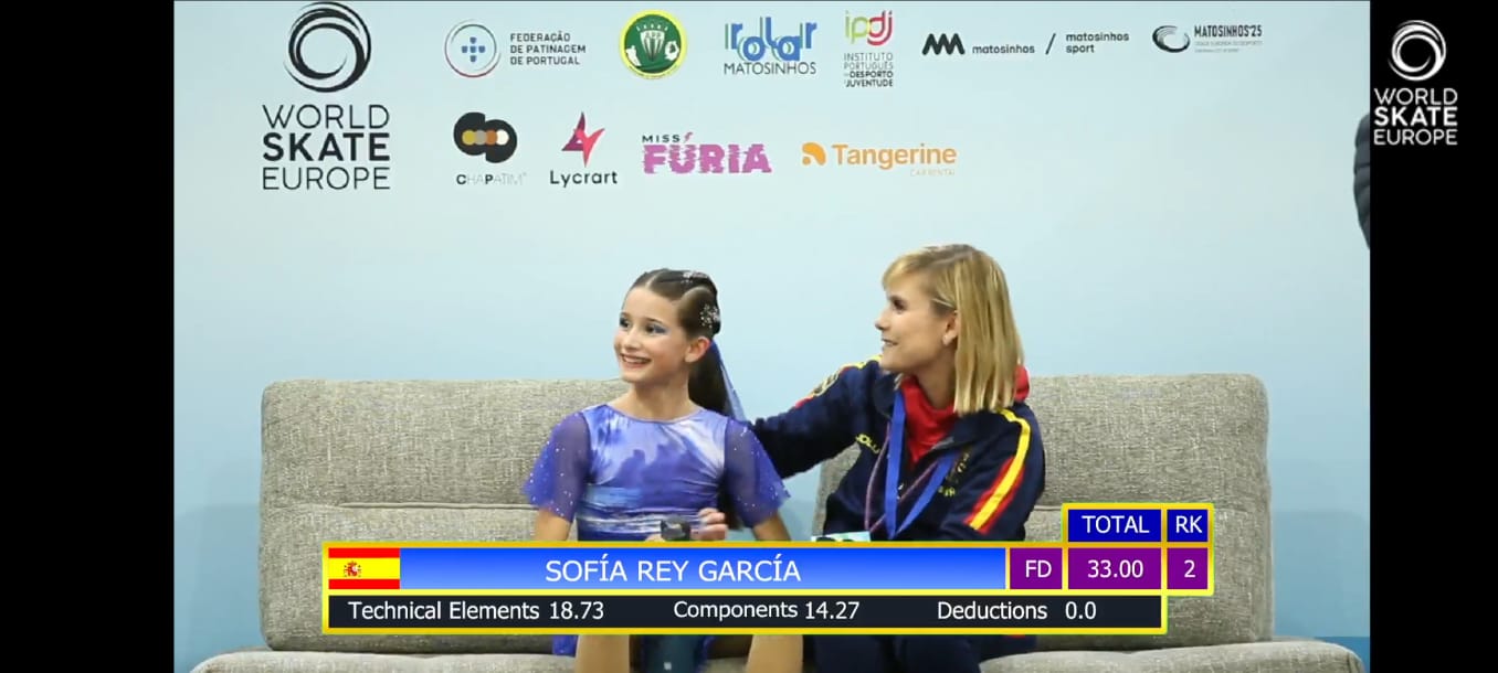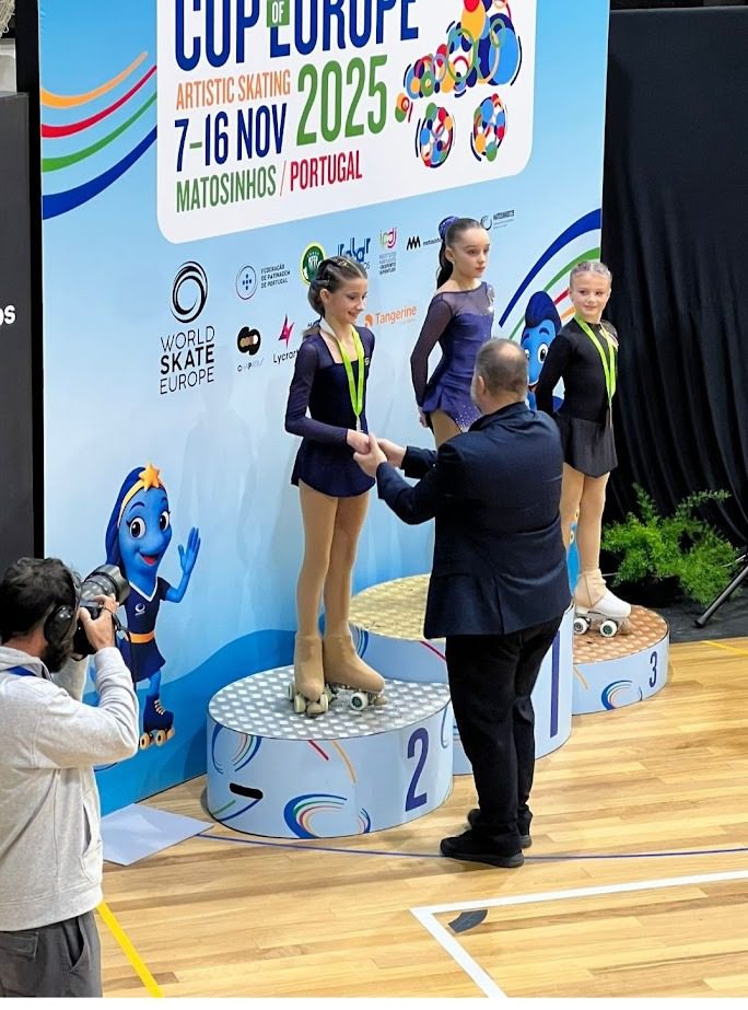 Sofía Rey García, alumna de 6.º de Primaria, ha puesto fin a una temporada sobresaliente colgándose la medalla de plata en la Copa de Europa Solo Dance, disputada en Portugal del 7 al 16 de noviembre entre 25 participantes. Llegaba a esta cita tras un curso deportivo muy intenso: en mayo alcanzó las semifinales de la Copa del Mundo en Trieste y firmó un sexto puesto entre 21 patinadoras, el mejor resultado español de la prueba. Meses después conquistó el primer lugar en el podio nacional, clasificación que la llevó a competir en Europa y situarse finalmente en la segunda posición continental.