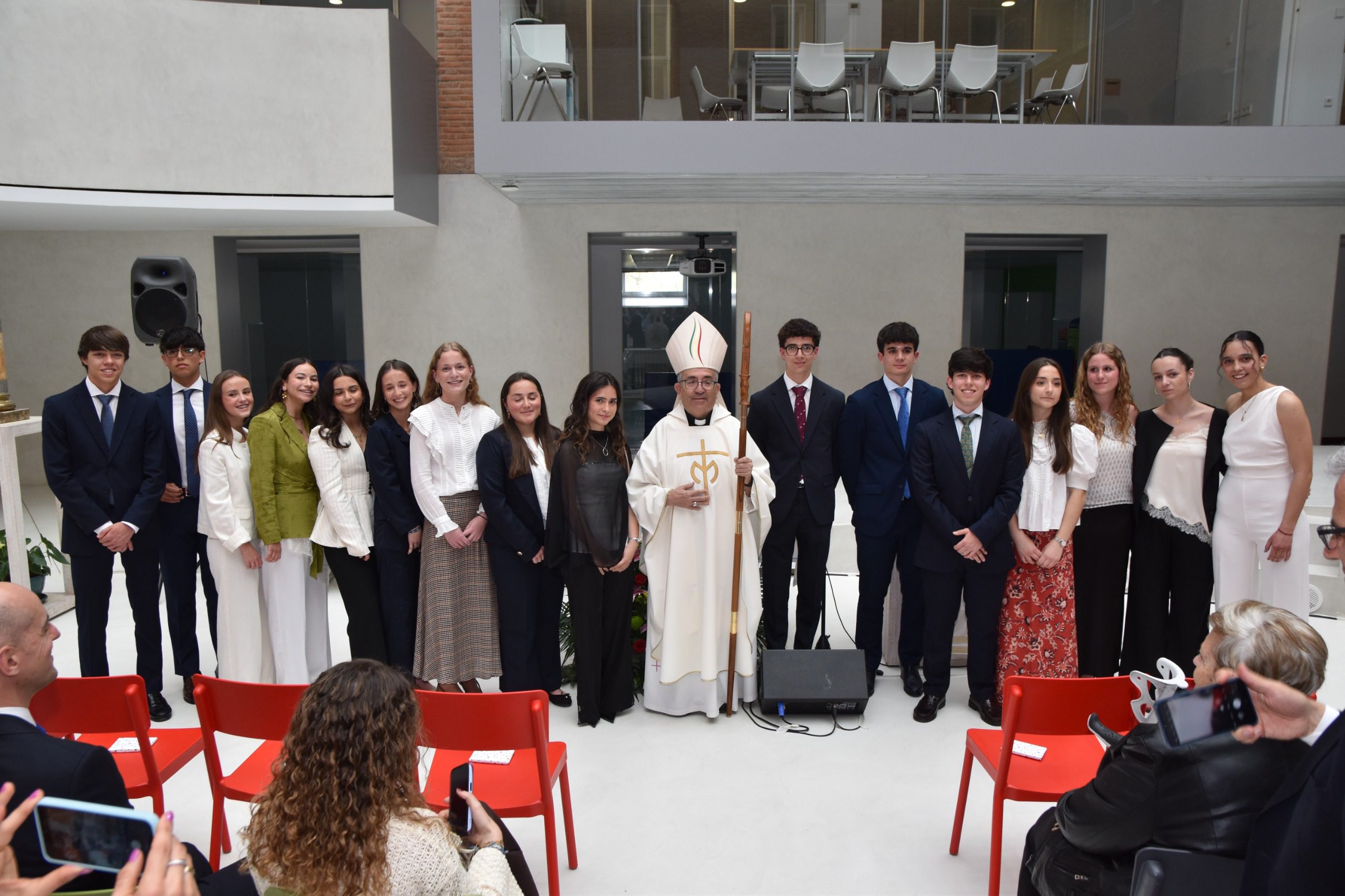 El viernes 10 de abril vivimos una celebración muy importante para nuestro colegio: 16 chicos y chicas de 2º de Bachillerato recibieron el sacramento de la Confirmación, presidido por don Luis Argüello, arzobispo de la diócesis.