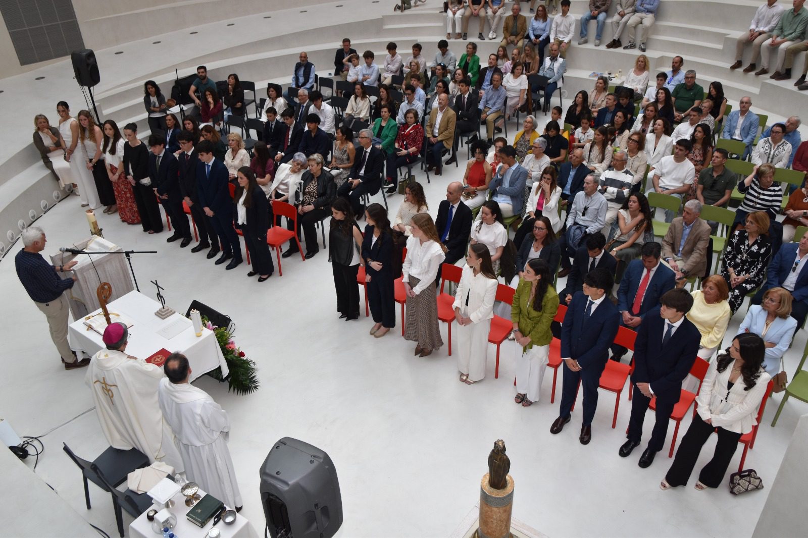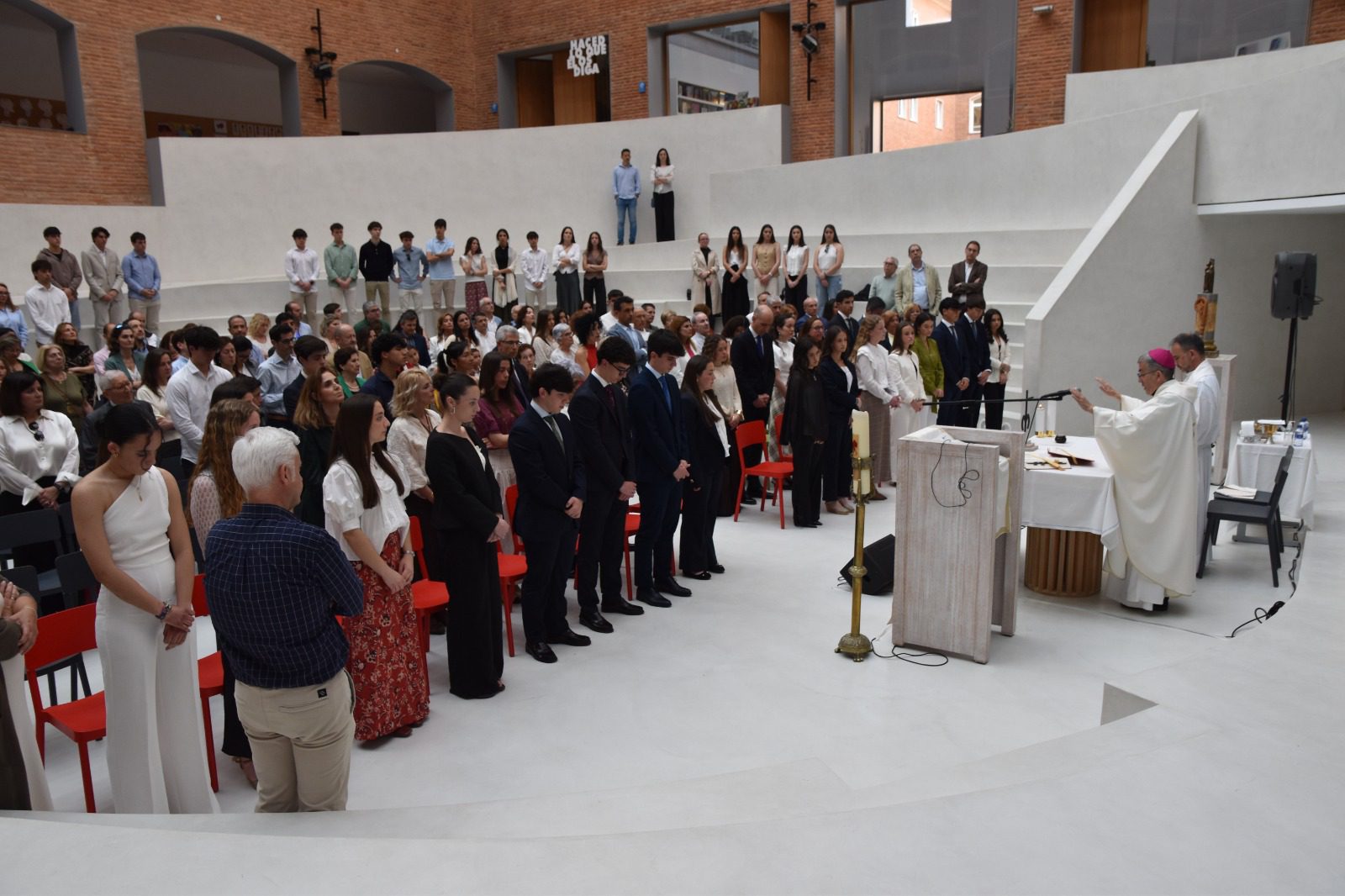 En la homilía, don Luis nos recordó algo esencial: la importancia de dar prioridad a Jesús en nuestra vida, por encima de propuestas individualistas que no conducen a la felicidad, ni personal ni como sociedad. Fue una llamada clara y directa, muy unida a lo que estos alumnos han ido trabajando en su preparación.