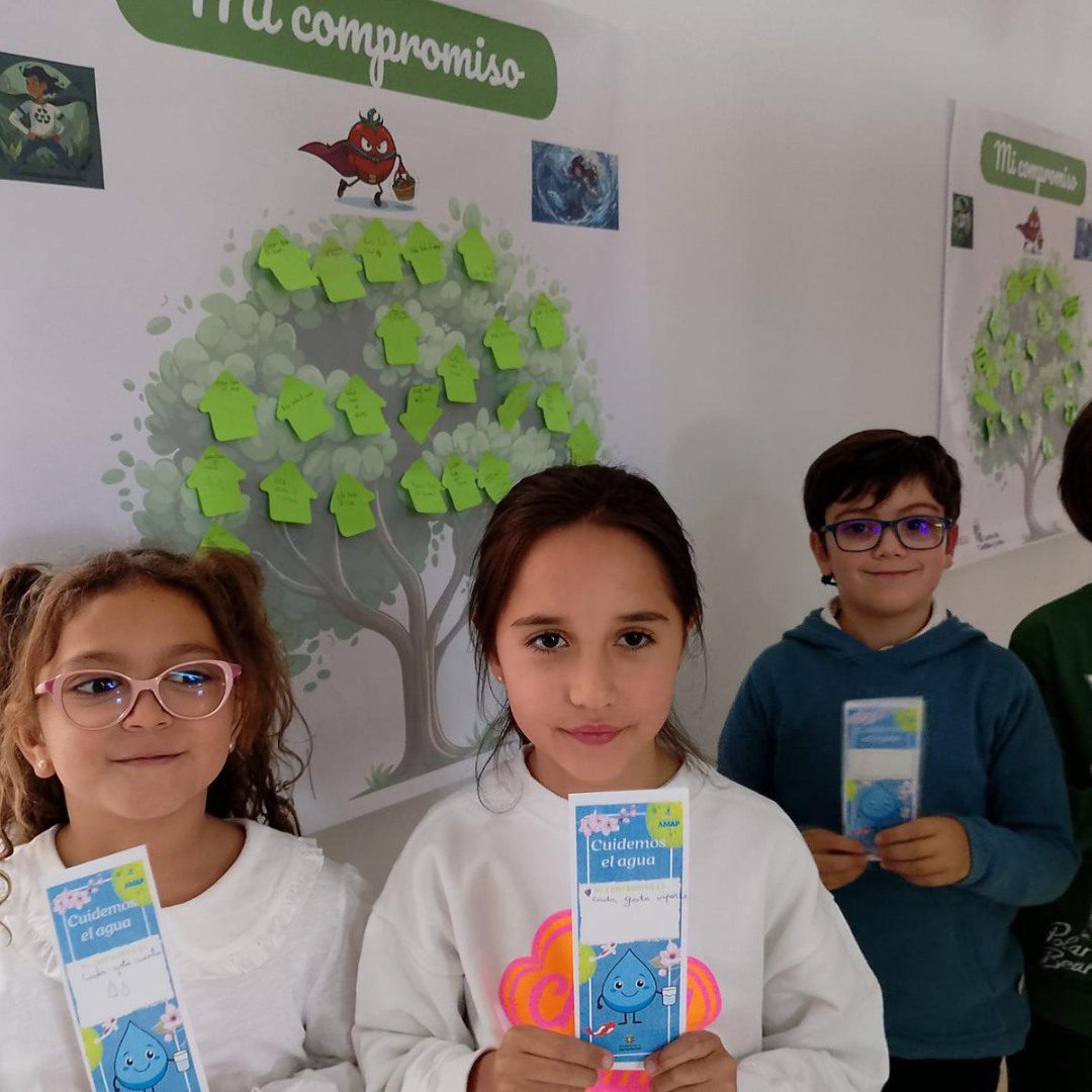 Al final de la sesión cada grupo preparó un póster con varios compromisos elegidos por ellos mismos. Fue nuestra manera de plasmar lo aprendido y dejarlo a la vista en clase. Como broche final, recibimos el “título” de guardianes del agua, que nos recordó que cada gesto cuenta.