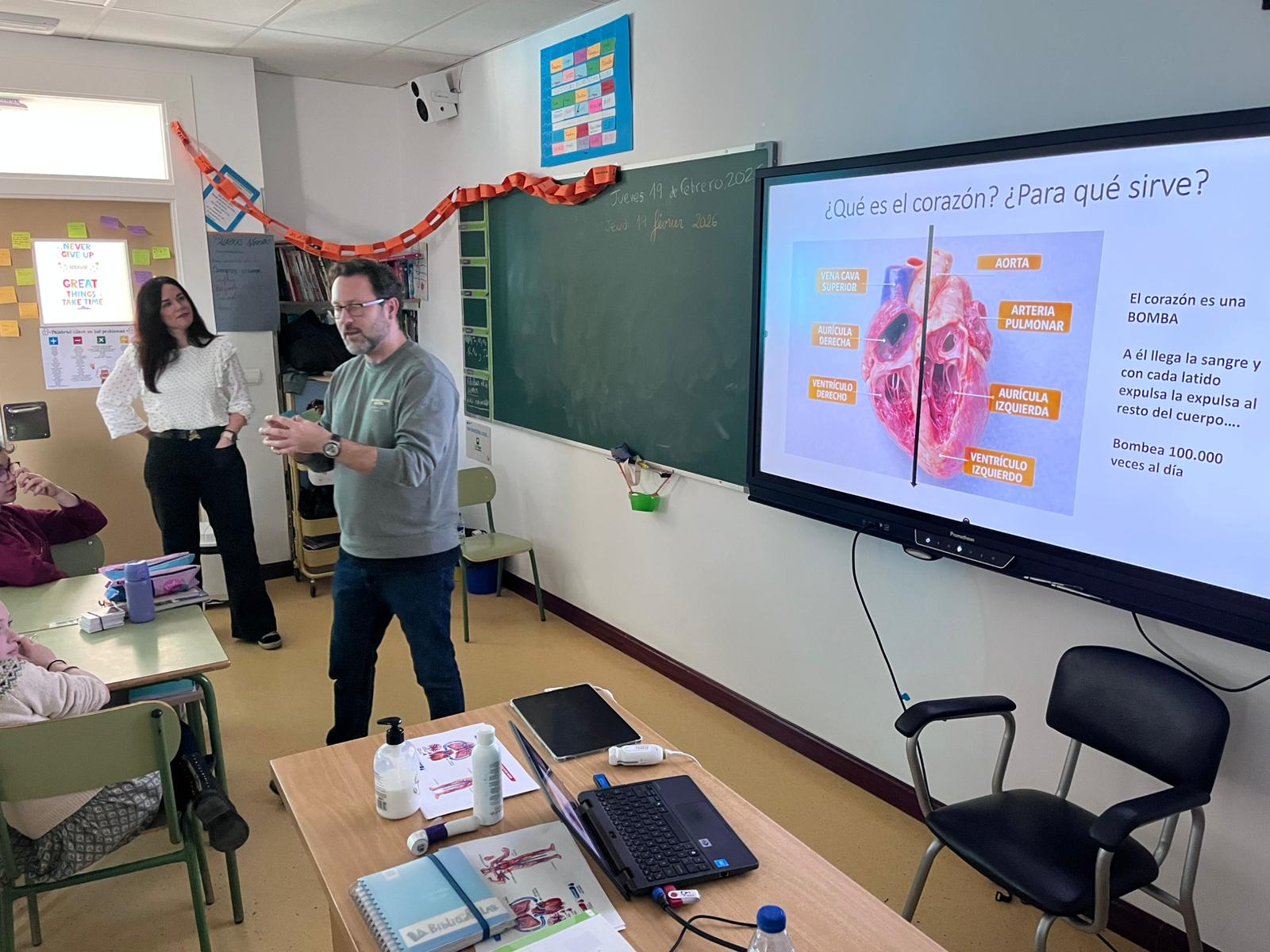 Hoy hemos recibido en el colegio una visita muy especial en 5.º de Primaria, dentro del área de Natural Science. Los padres de uno de nuestros alumnos, ambos médicos intensivistas, han compartido con el alumnado una charla clara y muy didáctica sobre el sistema circulatorio.