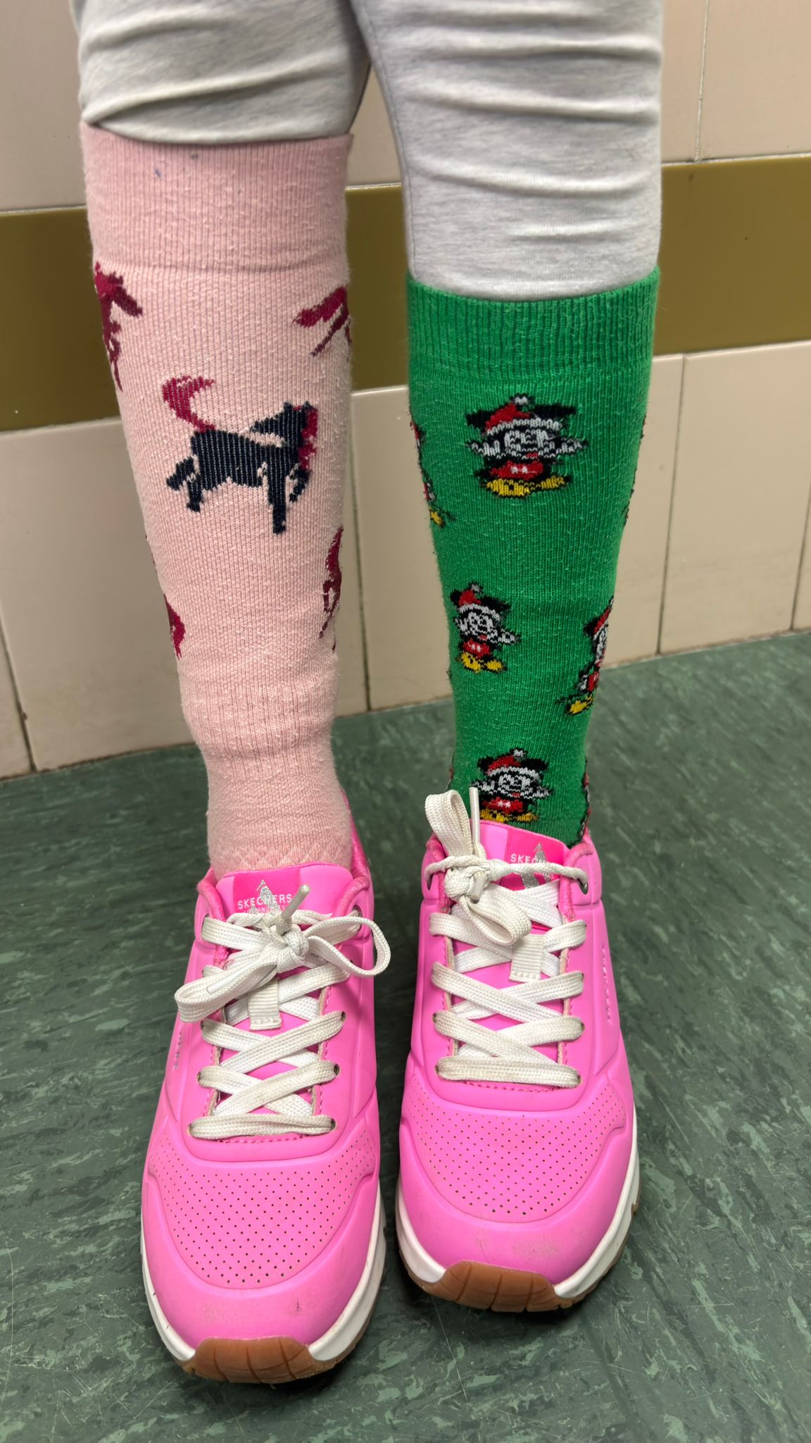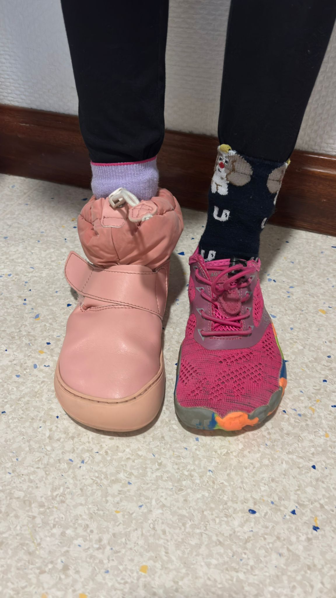 Desde primera hora, al entrar en el centro, ya se notaba que no era un día cualquiera. Zapatillas que normalmente no se encontrarían jamás compartían protagonismo, calcetines de rayas convivían con estampados de dibujos, colores lisos se mezclaban con diseños llamativos. En las clases de 1.º y 2.º de Educación Primaria hemos visto combinaciones de todo tipo: un calcetín rosa junto a otro verde, uno con personajes y otro completamente distinto, zapatos diferentes formando pareja por un día.