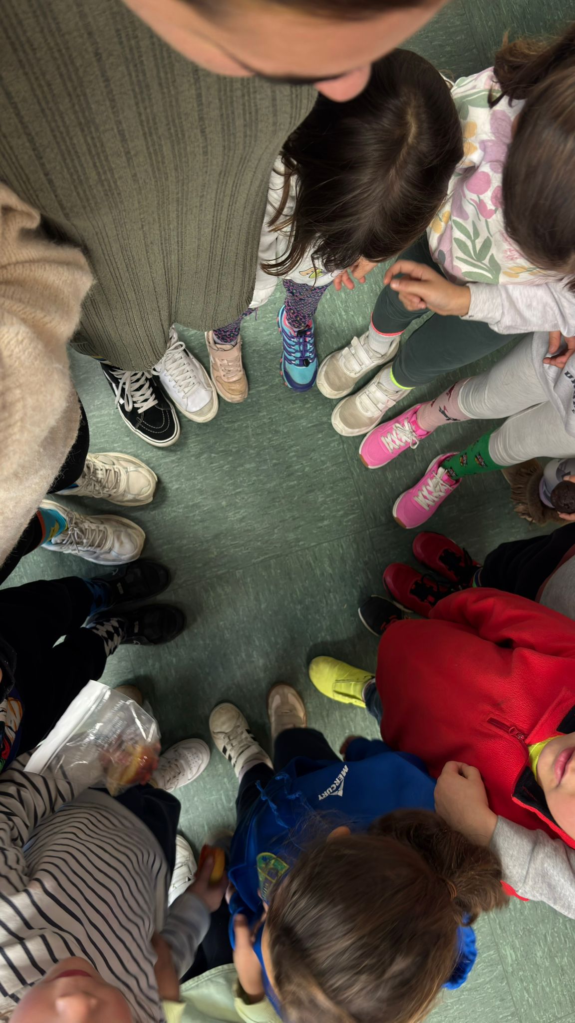 En las imágenes se ve a los niños y niñas levantando los pies para enseñar sus elecciones, comparando diseños y comentando cuál era la mezcla más sorprendente. También hemos formado pequeños corros para observar los detalles y celebrar la originalidad de cada propuesta.