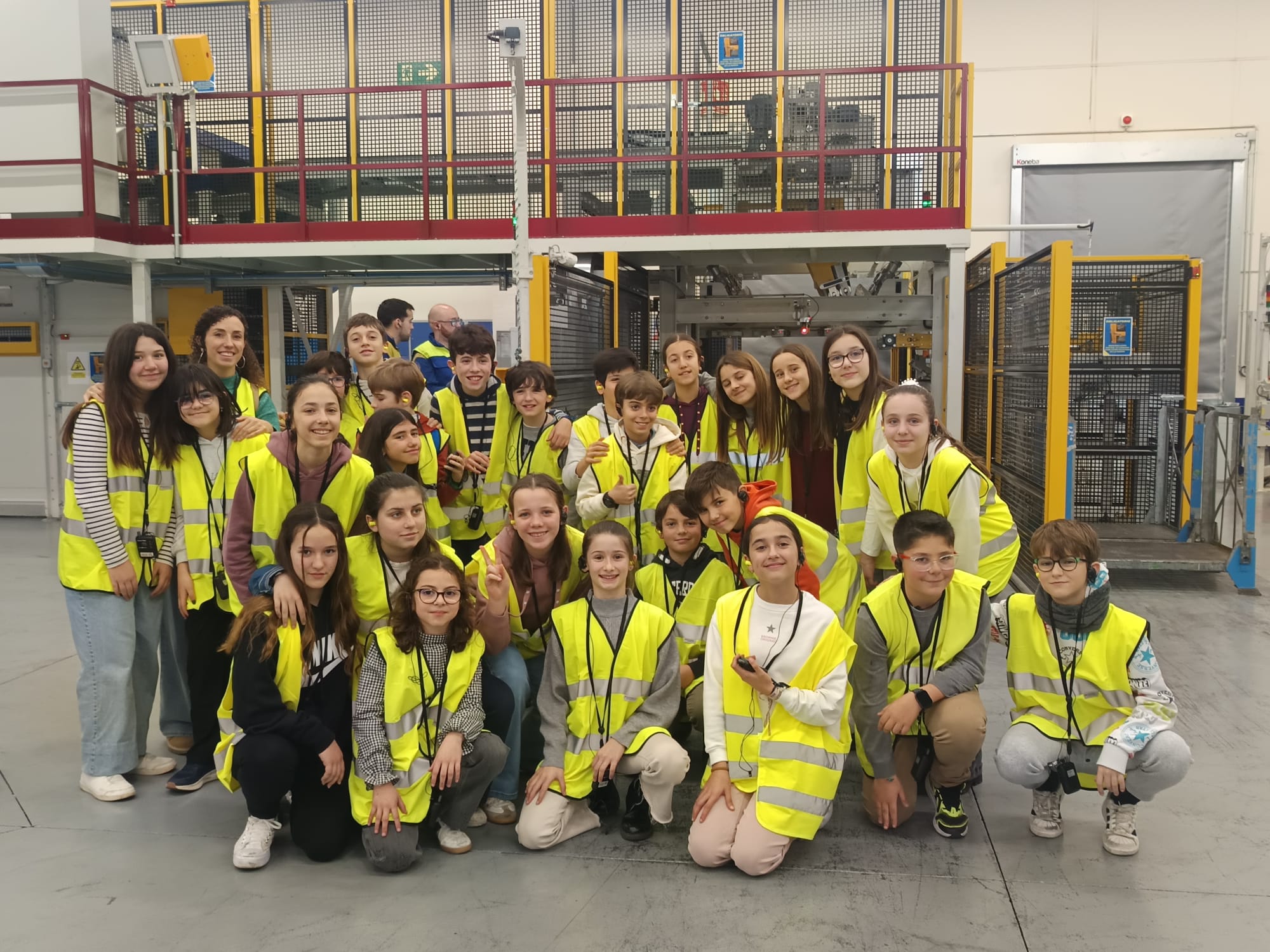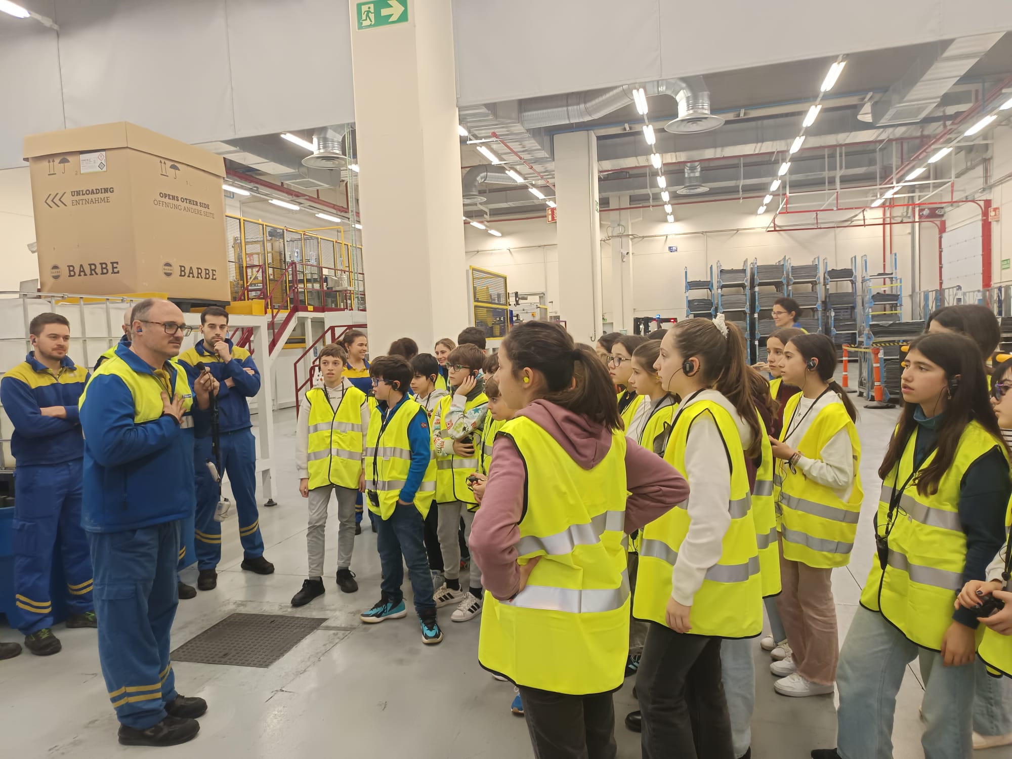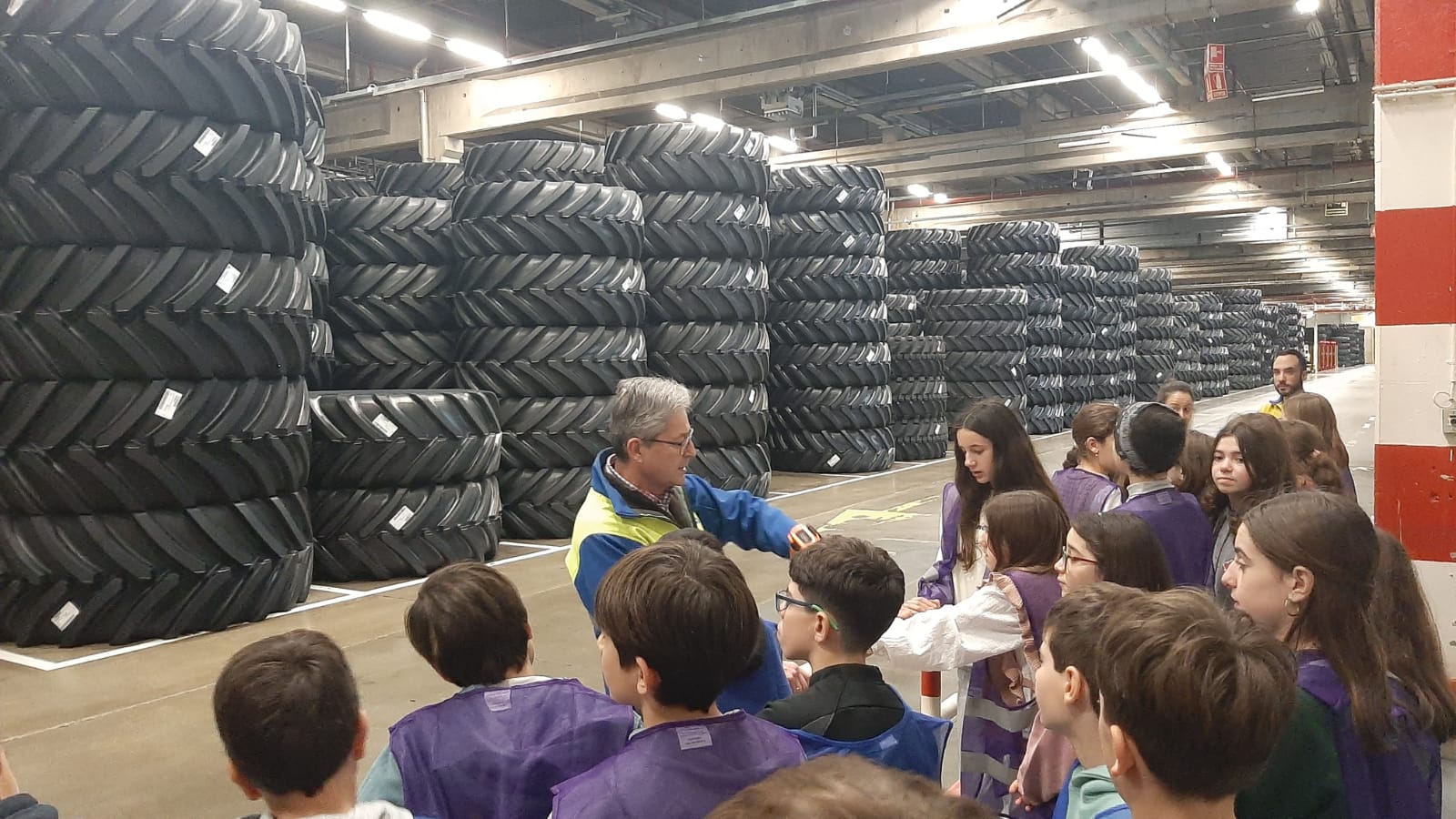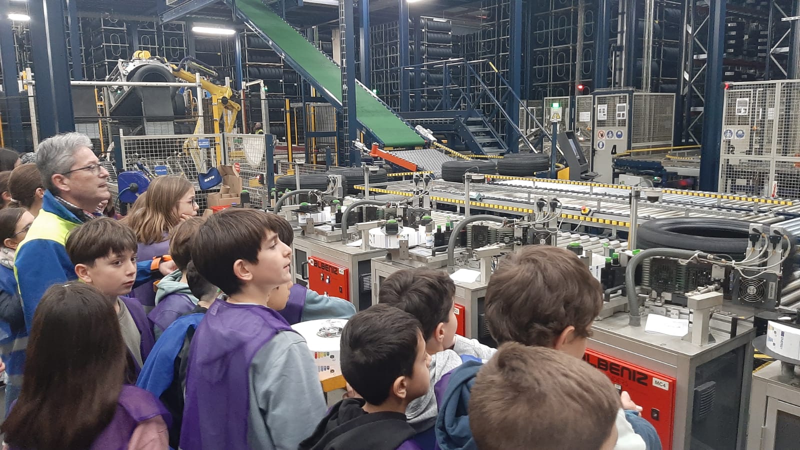 Después llegó uno de los momentos más esperados: la visita a la fábrica. Equipados con chalecos reflectantes, recorrimos algunas zonas de producción y observamos de cerca el proceso de fabricación de los neumáticos. Nos llamó especialmente la atención el tamaño de las máquinas, la organización de la cadena de trabajo y las enormes pilas de ruedas listas para salir.