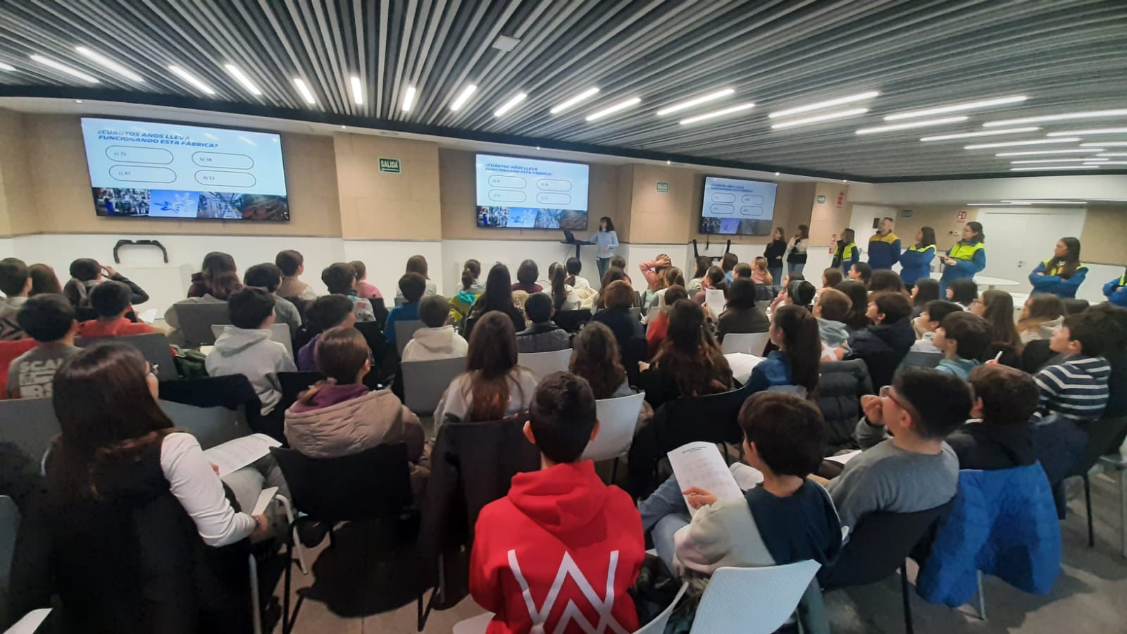 A partir de ahí, nos pusimos manos a la obra con varias dinámicas y talleres. En uno de ellos trabajamos en grupo con mapas y pistas para entender mejor el entorno y la organización del trabajo. En otro, participamos en una actividad sobre estudios STEM (ciencia, tecnología, ingeniería y matemáticas) y hablamos sobre la presencia de la mujer en estos ámbitos. También realizamos un juego por equipos para conocer los distintos perfiles profesionales que hacen posible el funcionamiento de una fábrica como esta.