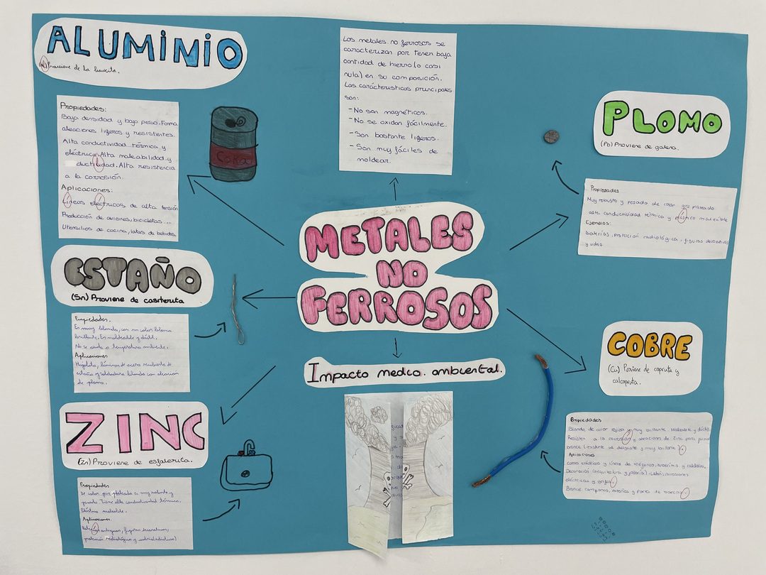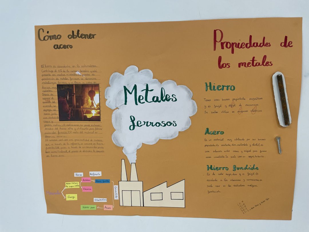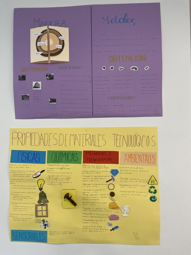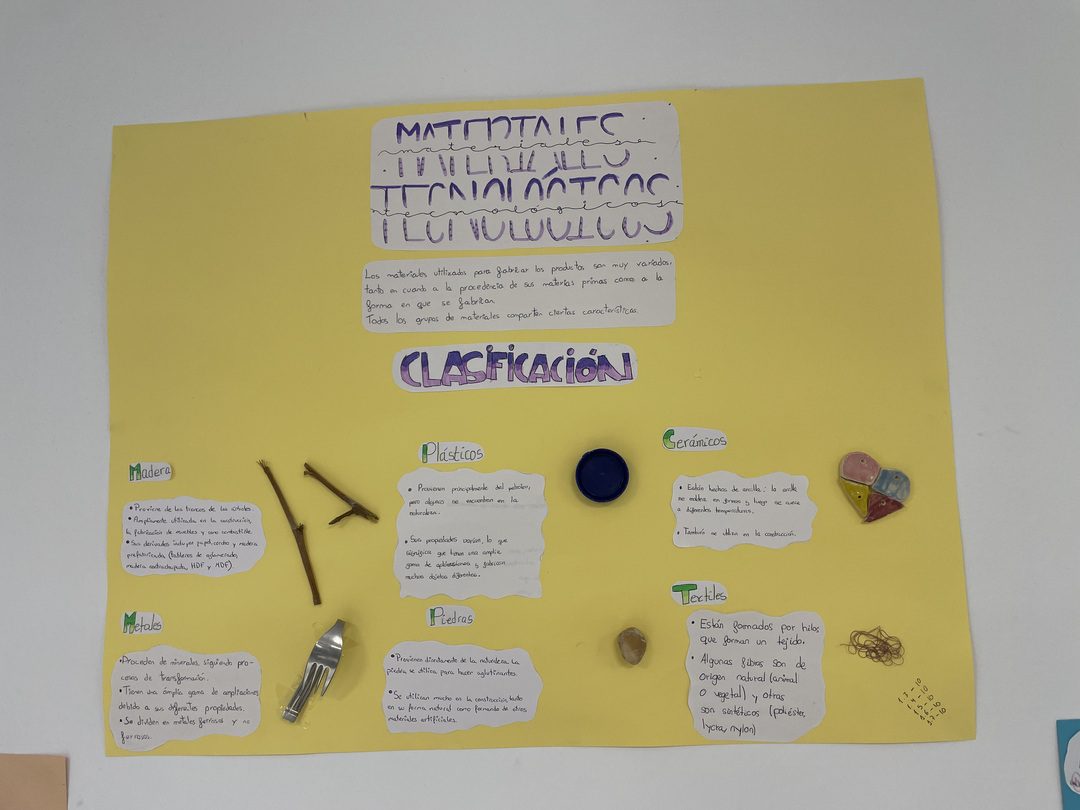En Tecnología, el alumnado de 1º de ESO ha estado investigando los materiales de uso técnico que encontramos a nuestro alrededor. Madera, metales, plásticos, textiles, cerámicos y materiales pétreos: cada grupo se ha centrado en conocer qué tipos existen y qué propiedades tienen.
