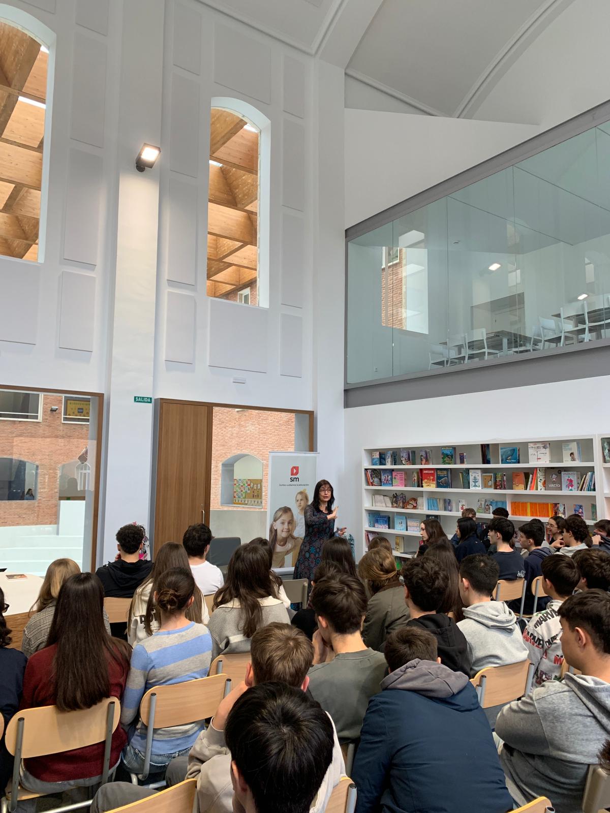 Durante la sesión, la autora nos contó cómo decidió dejar su carrera científica para dedicarse a su verdadera vocación: escribir. Desde hace dos décadas ha publicado numerosas historias, entre ellas Biografía de un cuerpo, novela con la que obtuvo el Premio Gran Angular de la editorial SM y que hemos leído y trabajado en asignaturas como Lengua y Literatura, Educación Física y Biología y Geología.