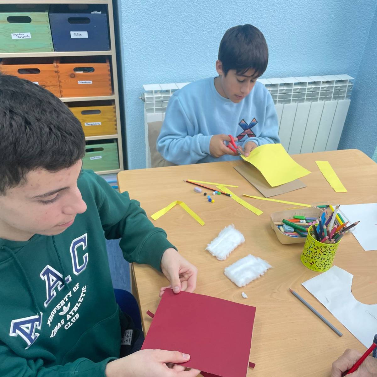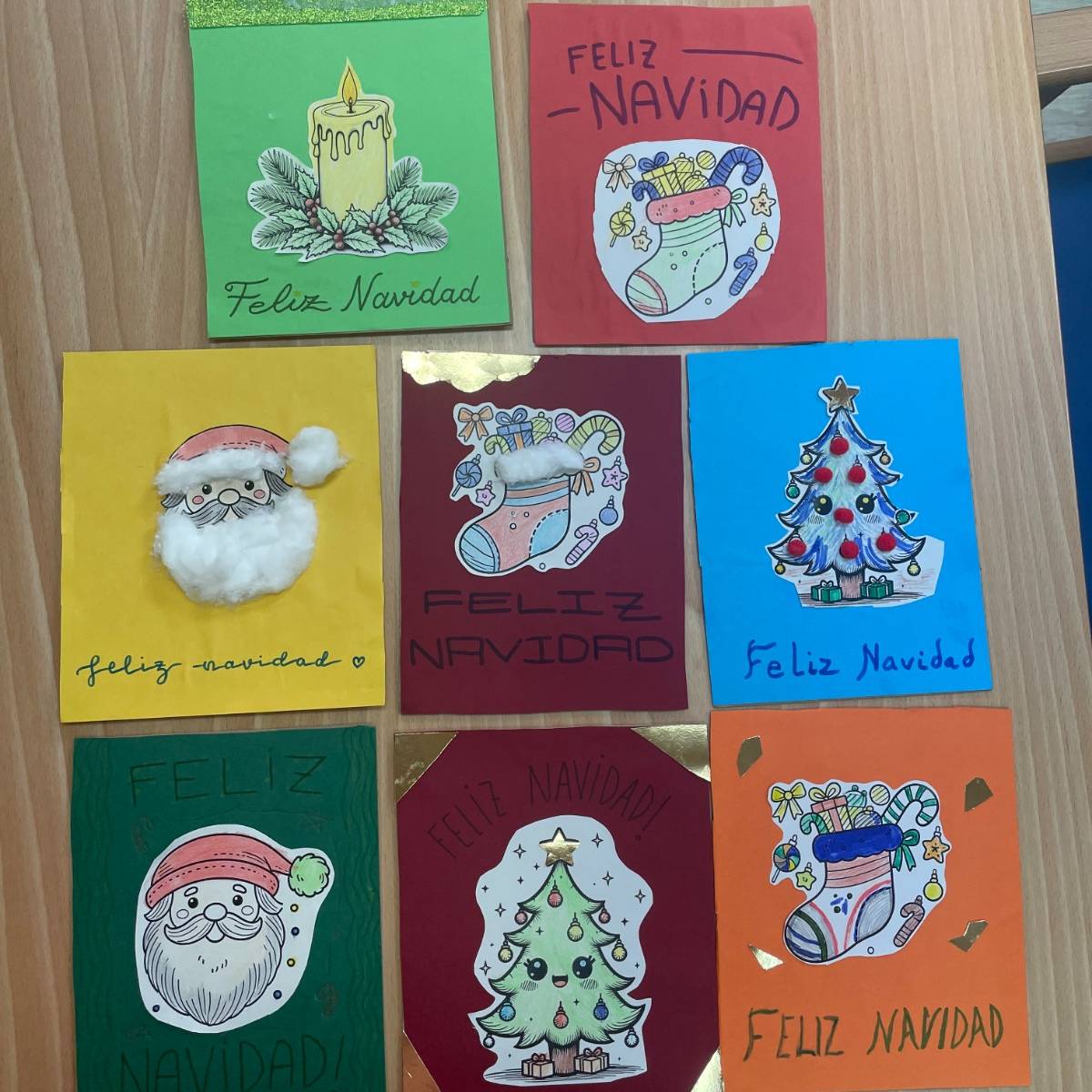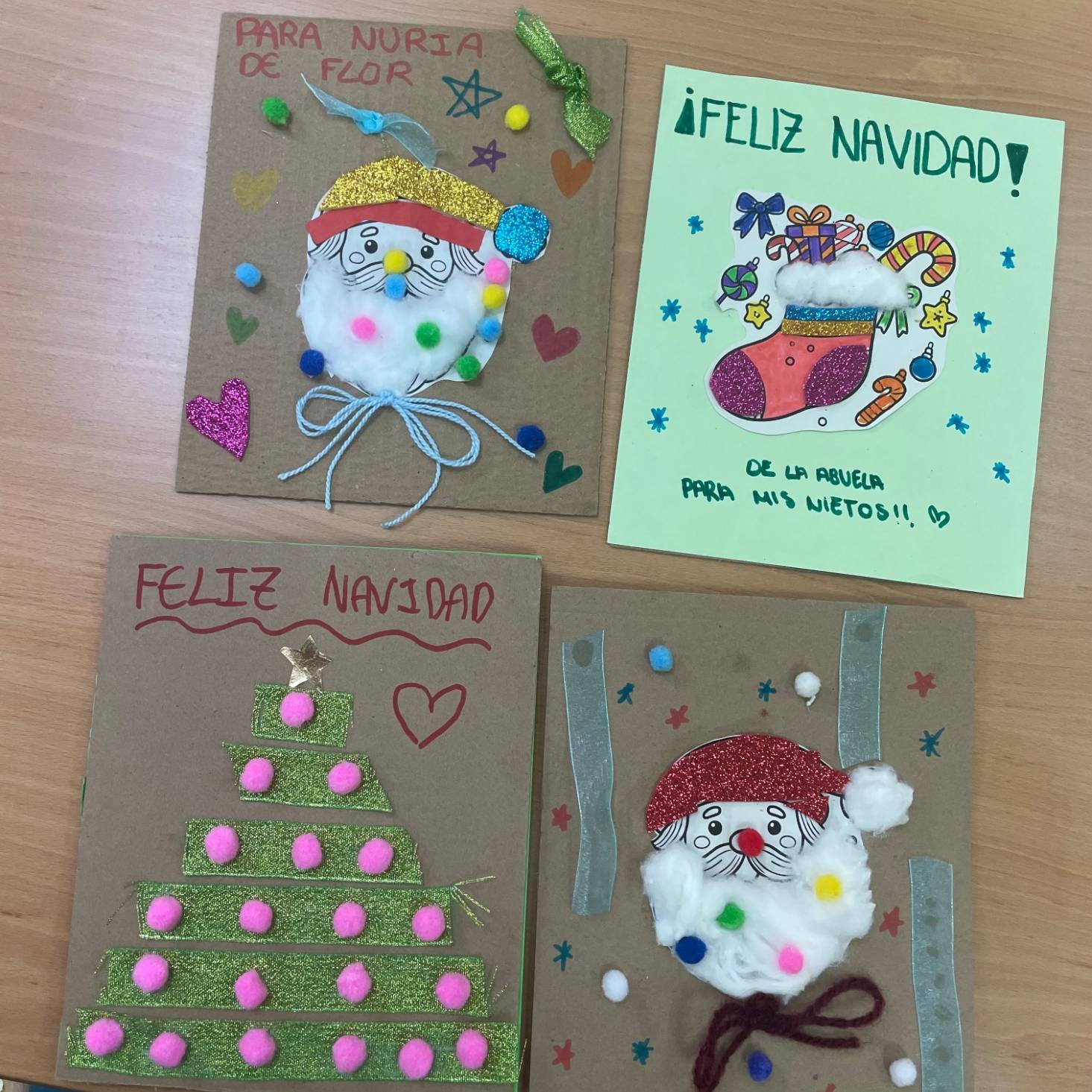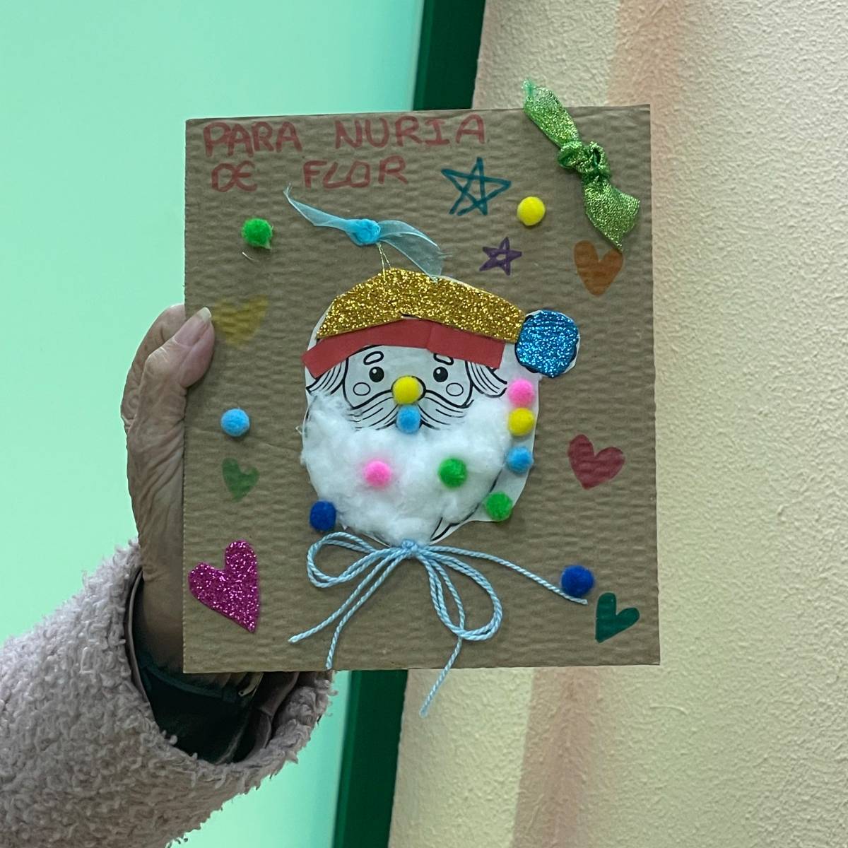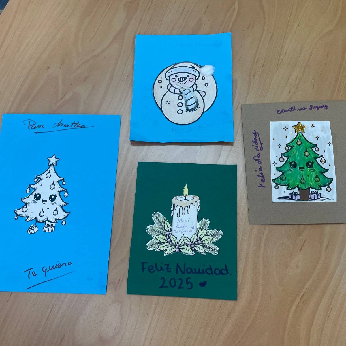 Durante la jornada, trabajaron juntos en la elaboración de postales navideñas, utilizando cartulinas, algodón, pegatinas y otros materiales creativos. En las mesas se mezclaban manos jóvenes y manos con experiencia, colaborando, comentando cada detalle y ayudándose mutuamente en cada paso. Además, no faltaron los villancicos, que comenzaron de forma tímida y terminaron convirtiéndose en un pequeño coro improvisado en el que todos participaron.
