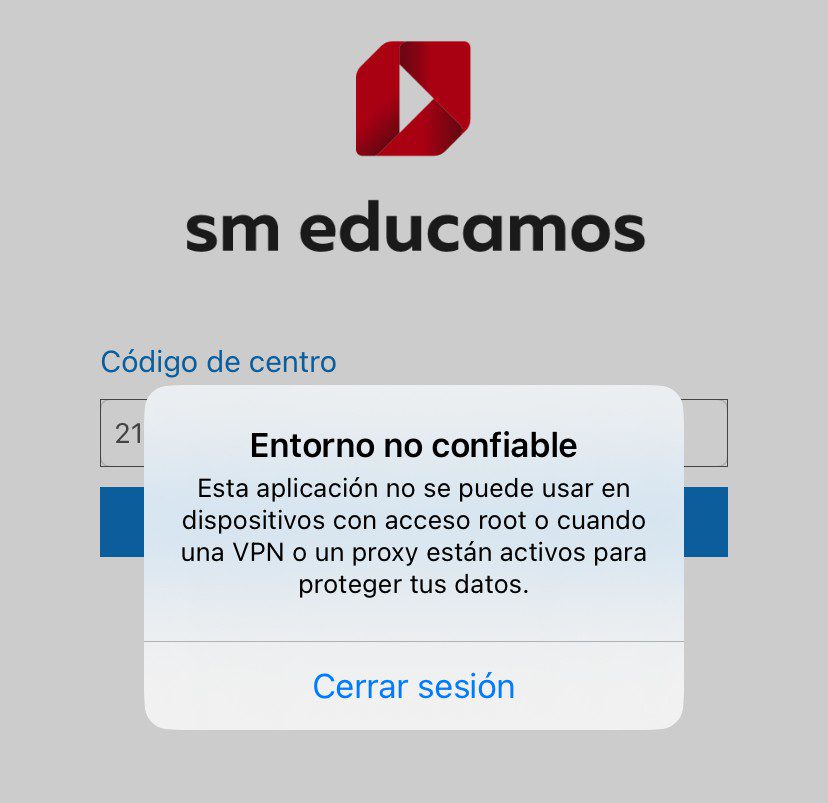 La decisión de Educamos de aplicar estos controles (proxy, certificados, VPN, root/jailbreak, etc.) es por seguridad, ya que la aplicación maneja datos sensibles de alumnado y familias.